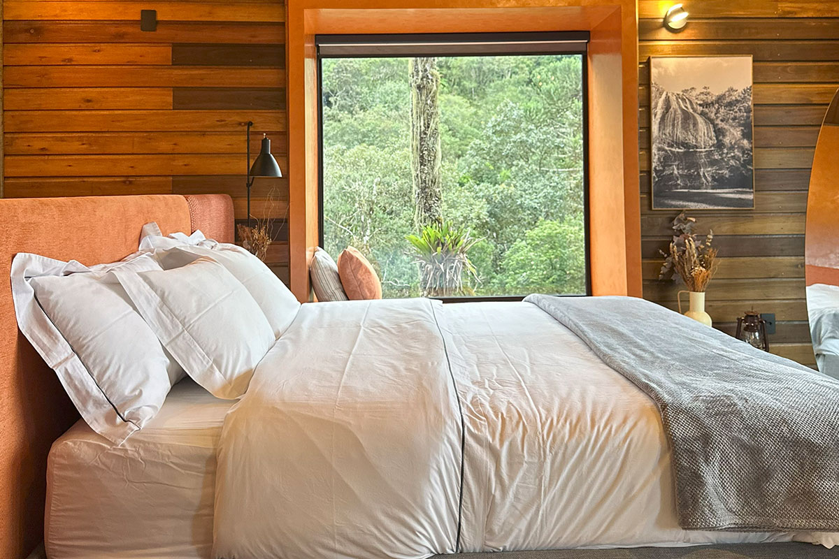Respirar o ar puro da natureza e encontrar nela um refúgio acolhedor, numa função perfeita entre a simplicidade e a exclusividade. É assim que você irá se sentir na Forest Cabin, um cantinho pra chamar de seu, desconectar e viver momentos inesquecíveis. Viva o agora.